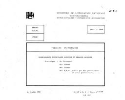 Les enseignements postscolaires agricole et ménager agricole en France métropolitaine et dans les DOM. Effectifs des élèves et des personnels. Répartition des locaux et des SEP créées par les gestionnaires des cours postscolaires....