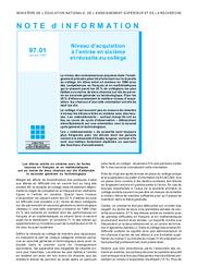 Niveau d'acquisition à l'entrée en sixième et réussite au collège.