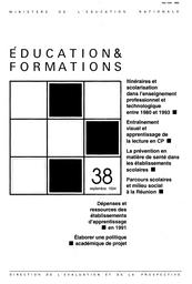 LEMAIRE, Sylvie | PAIR, Claude | France. Ministère de l'Education nationale, de l'Enseignement supérieur et de la Recherche (MENESR). Direction de l'évaluation et de la prospective (DEP). Bureau B4 | France. Ministère de l'Education nationale (MEN) | France. Ministère de l'éducation nationale (MEN). Service de la prévision, des statistiques et de l'évaluation (SPRESE). Sous-direction des enquêtes statistiques et des études (SDESE)