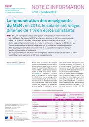La rémunération des enseignants du MEN : en 2013, le salaire net moyen diminue de 1 % en euros constants / Marion Defresne