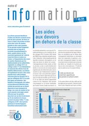 Les élèves peuvent bénéficier d'aides aux devoirs scolaires de la part de leurs parents, de frères et soeurs, d'amis, de proches ou bien suivre des cours de soutien gratuits ou des cours payants. Les résultats présentés ici sont issus de l'enquête permanente sur les conditions de vie des ménages (PCV) d'octobre 2003 menée par l'INSEE et qui comportait une partie consacrée à l'éducation. Si les parents restent présents tout au long de la scolarité, quatre élèves sur dix reçoivent de l'aide de la part de frères et soeurs ou d'amis. La fréquentation de cours de soutien dispensés par les établissements ou les collectivités augmente au collège (13 % en collège contre 7 % en élémentaire) et concerne les élèves issus de familles défavorisées. Les élèves ont également recours à des cours payants mais cette pratique concerne plus les lycéens (15 %) que les collégiens (8,5 %) et reste très typée socialement : des familles d'enseignants, de cadres ou de professions libérales mais surtout des parents qui se disent dépassés ou qui manquent de temps.