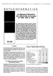 Dépense (la) d'éducation des collectivités territoriales en 1986, 1987 et 1988.