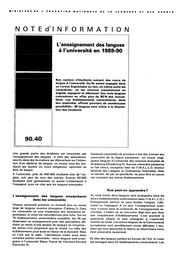 Enseignement (l') des langues à l'université en 1989-90.