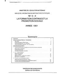 Statistiques des enseignements : Tableaux et informations. Chapitre 5, Les étudiants. Fascicume 5-4, La formation continue et la promotion sociale - année 1981 / Ministère de l'éducation nationale. Service de l'informatique de gestion et des statistiques