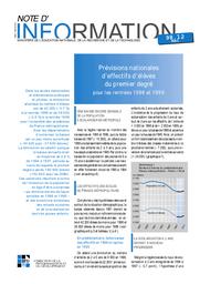 Projections nationales d'effectifs d'élèves du premier degré pour les rentrées 1998 et 1999.