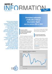 Prévisions nationales d'effectifs d'élèves du premier degré pour les rentrées 2001 et 2002.