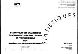Statistiques des examens des enseignements technologiques et professionnels. BEP, mentions complémentaires de niveau 5. Session 2000. Public, privé.