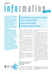 Les élèves du premier degré à la rentrée 2012 dans les écoles publiques et privées / Anne-Cécile Argaud, Linda Ben Ali et Sylvie Le Laidier