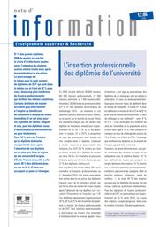 En 2008 ont été délivrés 94 000 masters, 38 000 licences professionnelles et 47 000 diplômes universitaires de technologie. Parmi les étudiants français qui ont obtenu un de ces diplômes, la proportion de ceux qui poursuivent leurs études est très variable. Les conditions d'insertion sont plus ou moins favorables selon le domaine d'études. L'accès à l'emploi et les conditions d'embauche sont moins favorables pour les diplômés issus d'un milieu social moins favorisé ; moins favorables également pour les femmes que pour les hommes. Les deux tiers des diplômés de master sont en emploi dans une entreprise privée. En encadré : présentation de l'enquête.