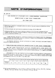 Elèves (les) et étudiants de l'enseignement supérieur bénéficiant d'une aide financière en 1988-1989.