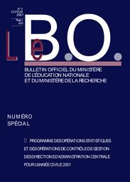 Bulletin officiel spécial n° 3 du 22 février 2001 : Programme des opérations statistiques et de contrôle de gestion des directions d'administration centrale : année 2001 / Ministère de l'éducation nationale