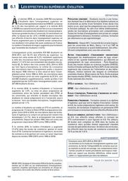6.1 : Les effectifs du supérieur : évolution. 6.2 : Les effectifs du supérieur par académie. 6.3 : Les étudiants dans les formations scientifiques. 6.4 : Les étudiants des universités. 6.5 : les nouveaux entrants à l'université. 6.6 : La population universitaire par établissement et académie. 6.7 : Les étudiants préparant un DUT. 6.8 : Les étudiants des filières d'ingénieurs. 6.9 : Les écoles de commerce, gestion et vente. 6.10 : Les classes préparatoires aux grandes écoles - CPGE. 6.11 : Les sections de techniciens supérieurs et assimilés. 6.12 : Les sections de techniciens supérieurs et assimilés par spécialité. 6.13 : Les femmes dans l'enseignement supérieur. 6.14 : L'origine sociale des étudiants français. 6.15 : Les étudiants de nationalité étrangère dans l'enseignement supérieur. 6.16 : Les étudiants de nationalité étrangère dans l'enseignement supérieur par nationalité. 6.17 : Les étudiants de nationalité étrangère dans les universités. 6.18 et 6.19 : les taux d'inscription des nouveaux bacheliers dans l'enseignement supérieur. 6.20 : Les entrants en première année de l'enseignement supérieur universitaire : provenance et devenir un an après. 6.21 : Le devenir des bacheliers 2014 : poursuite d'études et entrée dans l'enseignement supérieur. 6.22 : Le devenir des bacheliers 2008 : parcours après l'entrée à l'université. 6.23 Le devenir des bacheliers 2008 : parcours après l'entrée dans l'enseignement supérieur hors université. 6.24 : Les stages étudiants.