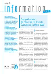 Le cycle des évaluations disciplinaires réalisées sur échantillon établit des bilans nationaux des acquis des élèves en fin d'école. La présentation des résultats permet de situer la performance des élèves sur des échelles de niveau. Renouvelées tous les six ans, ces évaluations permettent aussi de répondre à la question de l'évolution du niveau des élèves.Les évaluations portant sur les compétences en compréhension de l'écrit, ont été réalisées en 2003 et en 2009. Afin de pouvoir comparer les résultats des enquêtes, 80 items utilisés en 2003 ont été repris à l'identique en 2009. L'évolution statistiquement significative concerne la population du groupe 3 (moyens-forts). Les élèves semblent plus à l'aise dans le prélèvement d'informations que dans l'analyse d'un document. Ceci corrobore les résultats obtenus par les élèves français lors de l'évaluation internationale PIRLS.