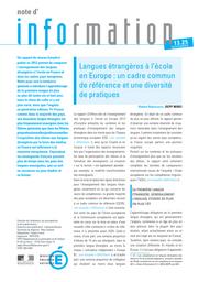 Un rapport du réseau Eurydice publié en 2012 permet de comparer l'enseignement des langues étrangères à l'école en France et dans les autres pays européens. Dans la plupart des pays étudiés, la première langue étrangère, généralement l'anglais, est étudiée de plus en plus tôt. Les collégiens sont de plus en plus nombreux à apprendre une deuxième langue ; pour le lycée, la deuxième langue n'est obligatoire, en France, que dans le secteur des services des baccalauréats professionnels. Les élèves français sont peu exposés aux langues étrangères, par l'intermédiaire des médias (livres, sites web), mais la mobilité transfrontalière des enseignants français est plus importante. En encadrés : différents statuts des langues ; sources et méthodologie ; définitions.