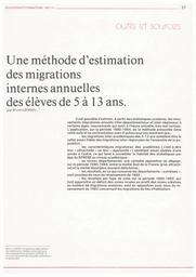 Education & Formations : éludes et documents : Sortie du système éducatif et destinations des jeunes à l'issue de l'école; Les personnels de l’Éducation nationale : Origine géographique et lieu de travail; Les personnels de l’enseignement technique et professionnel; Une méthode d’estimation des migrations internes annuelles des élèves de 5 à 13 ans : numéro 10 janvier-mars 1987. article 04, Une méthode d'estimation des migrations internes annuelles des élèves de 5 à 13 ans / Bruno Liensol