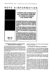 Opinion (l') des enseignants sur l'évaluation nationale en classe de sixième à la rentrée 1993.