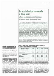 Le système éducatif français fait actuellement l'objet de pressions pour que soit étendue la scolarisation maternelle à l'âge de deux ans. Ces pressions sont fondées notamment sur l'argument que le milieu scolaire pourrait être un substitut efficace au milieu familial, en particulier lorsque celui-ci n'apparait pas procurer à l'enfant les stimulations suffisantes. Concernant le fonctionnement du système scolaire, les cas ont été nombreux dans lesquels il s'est révélé exister une divergence nette entre les opinions "communes" et les faits objectivement mesurés, pour qu'il apparaisse souhaitable de ne pas s'en tenir aux opinions. Sur cette question des effets de la maternelle à deux ans, il est donc apparu nécessaire de rechercher des éléments de fait qui pourraient cautionner ces opinions, ou au contraire les contredire.