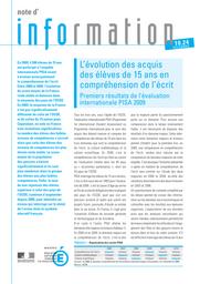 L'évolution des acquis des élèves de 15 ans en compréhension de l'écrit : Premiers résultats de l'évaluation internationale PISA 2009 / Sylvie Fumel, Saskia Keskpaik et Julie Girard