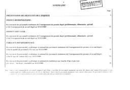 Instituteurs du 1er et 2nd degrés (France métro et France sans TOM) : par sexe, catégorie et mode de service ; par sexe, type de contrat et mode de service ; par année de naissance, sexe et catégorie d'enseignants. Personnels du 1er et 2nd degrés hors poste : par catégorie et sexe ; par type de contrat et sexe. Répartition académique et départementale des personnels du 1er et 2nd degrés : par sexe et catégorie ; par sexe selon le type de contrat ; par tranche d'âges et sexe.
