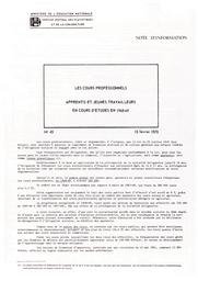 Les cours professionnels : apprentis et jeunes travailleurs en cours d'études en 1968-69 / Ministère de l'éducation national. Service central des statistiques et de la conjoncture