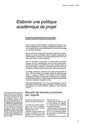 Les buts de cette étude ont été de recueillir des données et de percevoir des objectifs : mise en place d'une politique académique de projet communiquée aux établissements publics locaux d'éducation ; recueillir des données quantitatives et qualitatives sur l'élaboration et le suivi des projets d'établissements dans l'académie de Nice sur les années 1990, 1991, 1992. Mobiliser la communauté éducative et impliquer les différentes catégories de personnel.