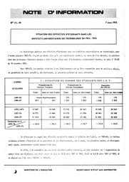 Situation des effectifs d'étudiants dans les instituts universitaires de technologie en 1974-1975