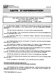 Les instituteurs des classes sous contrat des établissements privés, 1986-1987