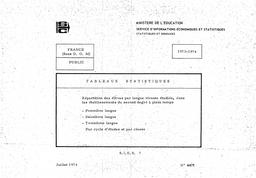 Etablissements publics du second degré ; répartition des élèves par langue vivante étudiée, cycle, classe. 1973-1974.