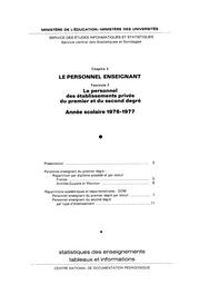 Statistiques des enseignements : Tableaux et informations. Chapitre 3, Le personnel enseignant. Fascicule 3, Le personnel des établissements privés du premier et du second degré : année scolaire 1976-1977 / Ministère de l'éducation. Service des études informatiques et statistiques