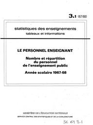 Statistiques des enseignements : Tableaux et informations. Chapitre 3, Le personnel enseignant. Partie 1, Nombre et répartition du personnel de l'enseignement public : année scolaire 1967-1968 / Ministère de l'éducation nationale. Service central des statistiques et de la conjoncture