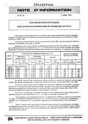 Situation des effectifs d'élèves dans les instituts universitaires de technologie en 1971-72 / Ministère de l'éducation nationale. Direction chargée de la prévision
