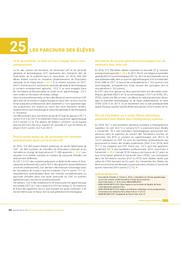 Les indicateurs 25 à 30 les parcours, l'orientation et l'insertion : Les parcours des élèves; La réussite aux examens; Les sorties de formation aux faibles niveaux d’études; Le niveau d’études de la population; L’insertion professionnelle des jeunes; Le diplôme et l’entrée dans la vie active