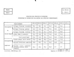 Evolution des effectifs de boursiers du second degré et du supérieur de 1964-65 à 1969-70 (public) ; pourcentage de répartition par rapport aux effectifs correspondants.