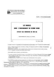 Les bourses dans l'enseignement du second degré : Effectifs des boursiers en 1967-68 : Enseignements public et privé / Ministère de l'éducation nationale. Service central des statistiques et de la conjoncture