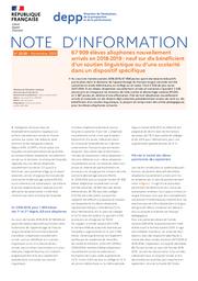 Au cours de l’année scolaire 2018-2019, 67 909 jeunes ayant des besoins éducatifs particuliers dans le domaine de l’apprentissage du français langue seconde ont été scolarisés en école élémentaire, en collège ou en lycée. C’est 3 559 de plus qu’en 2017-2018. À ces élèves allophones nouvellement arrivés et scolarisés s’ajoutent 2 035 jeunes pris en charge par les missions de lutte contre le décrochage scolaire (MLDS) et 2 587 jeunes en attente d’une affectation. Près de huit allophones nouvellement arrivés et scolarisés sur dix étaient déjà scolarisés précédemment et plus de neuf sur dix bénéficient d’un soutien linguistique, la plupart du temps dans des unités pédagogiques pour les élèves allophones arrivants.