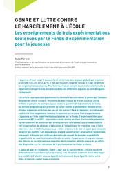 Education & Formations : L'égalité entre les filles et les garçons, entre les femmes et les hommes, dans le système éducatif : Volume 2 – suite du n° 96.- n° 97, sept. 2018. article 2, Genre et lutte contre le harcèlement à l’école. Les enseignements de trois expérimentations soutenues par le Fonds d’expérimentation pour la jeunesse / Aude Kerivel