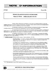Origine scolaire des élèves du second degré public et privé. Année scolaire 1972-1973