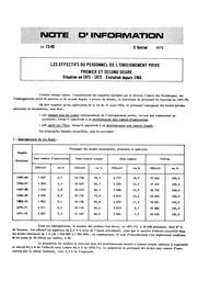 Les effectifs du personnel de l'enseignement privé, premier et second degrés. Situation en 1971-1972. Evolution depuis 1965