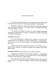 Evolution des effectifs depuis 1959-60. Nombre d'écoles et de classes. Répartition des effectifs par classe (y compris l'enseignement spécial), sexe et âge, puis par niveau scolaire, académie et département de France métropolitaine. Un chapitre est consacré aux DOM.