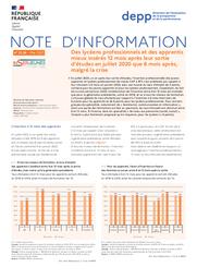 Des lycéens professionnels et des apprentis mieux insérés 12 mois après leur sortie d’études en juillet 2020 que 6 mois après, malgré la crise / Christel Collin, Nathalie Marchal