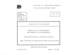 Enquête sur le recensement des emplois et des personnels : enseignements préscolaire, élémentaire et spécial. Public, 1970-71.