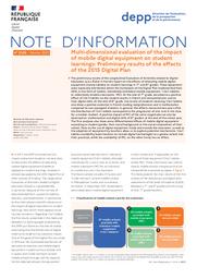 The preliminary results of the Longitudinal Evaluation of Activities related to Digital Education (a.k.a Élaine in French) report on the effects of allocating mobile digital equipment (mainly tablets) on student learnings in 7th and 8th grades. These equipment were especially distributed within the framework of the Digital Plan implemented from 2015, in the form of tablets, individually (individual mobile equipment - 1-to-1 tablets) or collectively (mobile classrooms - MC). At the end of 7th grade, we observe a positive effect of 1-to-1 tablets on the student results in French oral comprehension and on their digital skills. At the end of 8th grade, the results of students receiving 1-to-1 tablets also show a positive evolution in French reading comprehension and in mathematics compared to non-equipped students. In general, the effects measured two years after the distribution of 1-to-1 tablets correspond to the progression of one rank in the class for a median student. A positive impact of MC of the same magnitude can also be observed on mathematical and digital skills of 8th graders at the end of the school year. The first analyses also show some differentiated effects of mobile digital equipment according to student gender, their social background or the social composition of their school. Data on the use of digital equipment inside and outside the classroom, as well as the adoption of equipment by teachers allow us to explore potential mechanisms. 1-to-1 tablets availability leads teachers to include digital technologies to a greater extent into their practices, while the availability of MC, on the other hand, has no effect.