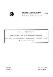 Note technique pour l'élaboration de prévisions académiques d'effectifs d'étudiants dans l'enseignement supérieur public à l'horizon 1971-72 (prolongation de tendances).