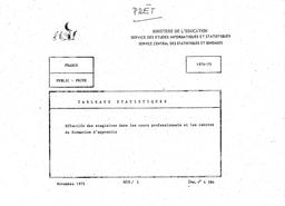 Effectifs des stagiaires dans les cours professionnels et les centres de formation d'apprentis. Public, Privé, 1974-75.