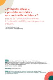 à l'université, à savoir les étudiants de licence 1 qui, lors de la première année d'études, ne sont pas inscrits dans la formation souhaitée. En utilisant deux variables distinctes (rang du voeu de la formation acceptée sur Admission Post-Bac et déclaratif au 1er mars de la première année d'études), trois profils d'étudiants ayant connu une telle orientation peuvent être distingués, présentant des différences à la fois sociales et scolaires : les « probables déçus », les « possibles satisfaits » et les « contrariés certains ». La nature de l'information