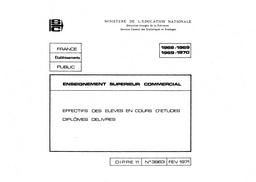 Enseignement supérieur commercial : effectifs en cours d'études et diplômes délivrés, 1969-70.