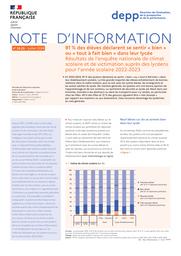 91 % des élèves déclarent se sentir « bien » ou « tout à fait bien » dans leur lycée : résultats de l’enquête nationale de climat scolaire et de victimation auprès des lycéens pour l’année scolaire 2022-2023 / Boubou Traore