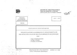 Récapitulations académiques et départementales des effectifs d'élèves dans les établissements privés du second degré : type d'établissement, par cycle, classes et sections, par sexe, 1971-72 / Ministère de l'éducation nationale. Direction chargée de la prévision