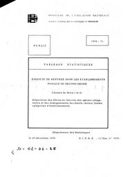 Enquête de rentrée dans les établissements publics du second degré : classes de quatrième I et II, 1970-71.