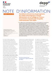Conditions d’exercice et perceptions du métier d’enseignant à l’école élémentaire et au collège en France : les premiers résultats de l’enquête internationale Talis 2024 / Kaddy Ceesay, Christelle Raffaëlli, Norbert Rugambage, Clothilde Voisin